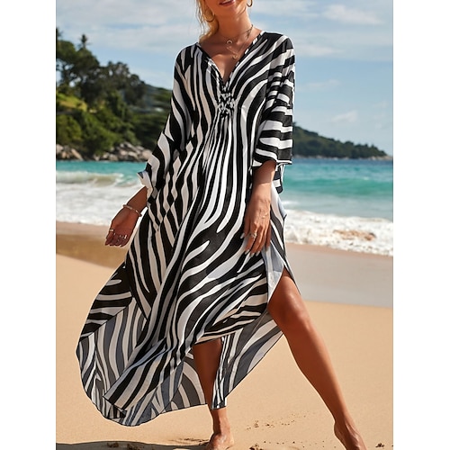 Per donna Abito maxi Abito da Spiaggia Vestito Casual Abito Boho Copricostume Elegante Moda Moderno All'aperto Spiaggia Vacanza Vestibilità comoda A righe Manica Corta Scollo a V Blu Nero Bianco Rosa