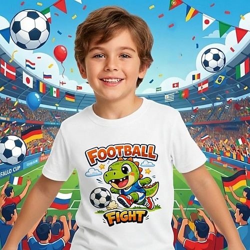 100% Cotone Bambini Ragazzi Bianco Grafico Dinosauro Calcio Magliette da calcio Maglietta Blusa Girocollo Manica Corta All'aperto Abbigliamento Quotidiano Moda Streetwear Designer Stampa Estate