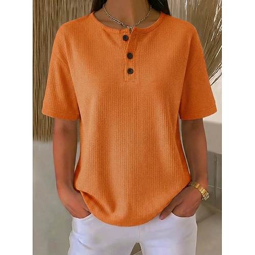 Per donna Taglia grande Top a maglia a coste Maglietta Bottoni Davanti Moda Casual Spiaggia Manica Corta Henley Top lunghi Quotidiano Uscire Abbigliamento da vacanza Blu Bianco Arancione Verde Azzurro