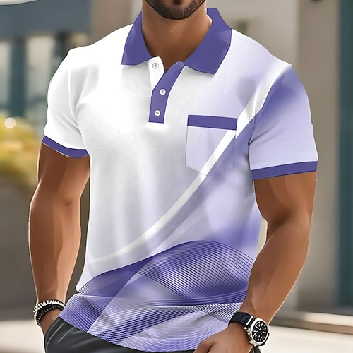 Herren Geometrisch Linie Polo Kurzarm Polo-Shirts Hemden mit Kragen Lässig Outdoor Athleisure Alltagskleidung 3D-Druck Knöpfe Sommer Blau Rote Purpur