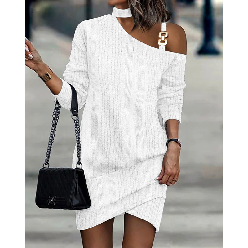 Women's Midi Dress Casual Dress Elegant Fashion Modern Daily Outdoor Office Slim Plain Long Sleeve One Shoulder White Winter Autumn