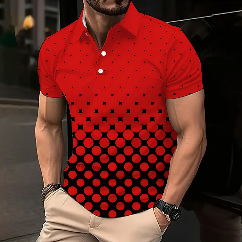 Men's Geometic Polo Short Sleeve Polo Shirts Collared Shirts Business Casual Athleisure Buttons Summer Red