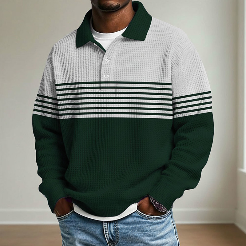 Men's Striped Waffle Polo Shirts Rugby Polo Long Sleeve Polo Shirts Collared Shirts Casual Athleisure Daily Wear Buttons Spring Fall Winter Blue Black Red
