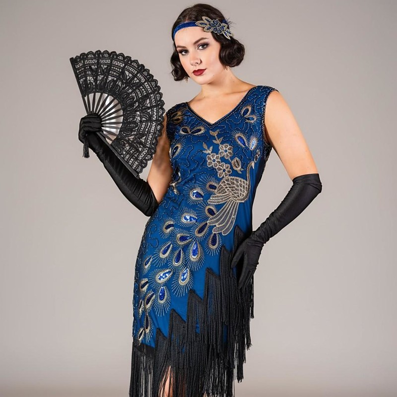 Set with Flapper Dress Feather Headband Long Opera Gloves Necklace Earings Cigarette Holder Women's Roaring 20s 1920s Flapper Girl Cocktail Masquerade Outfits The Great Gatsby Costume