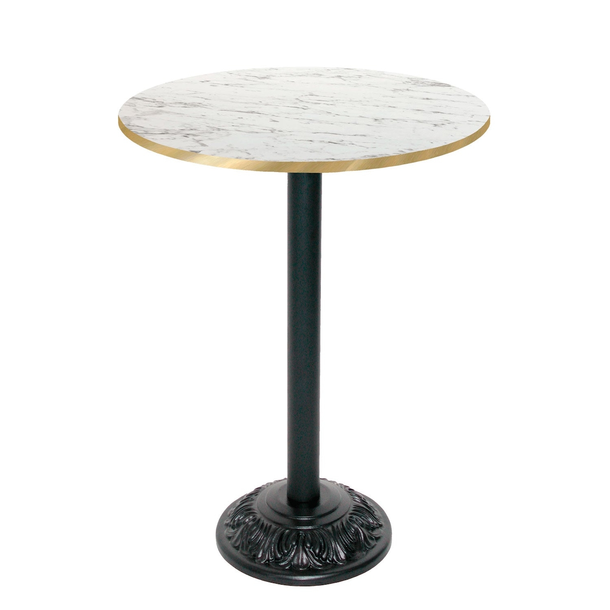 Restootab Stehtisch Bistrot-Stil Ø70cm - Modell Calacatta mit messingfarbenen Kanten