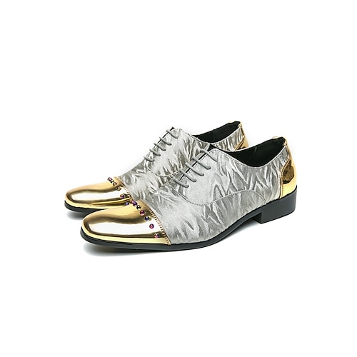 scarpe formali da uomo con finitura a specchio color oro e dettagli metallici, calzature da sposa di lusso, perfette per lo sposo e gli invitati al matrimonio