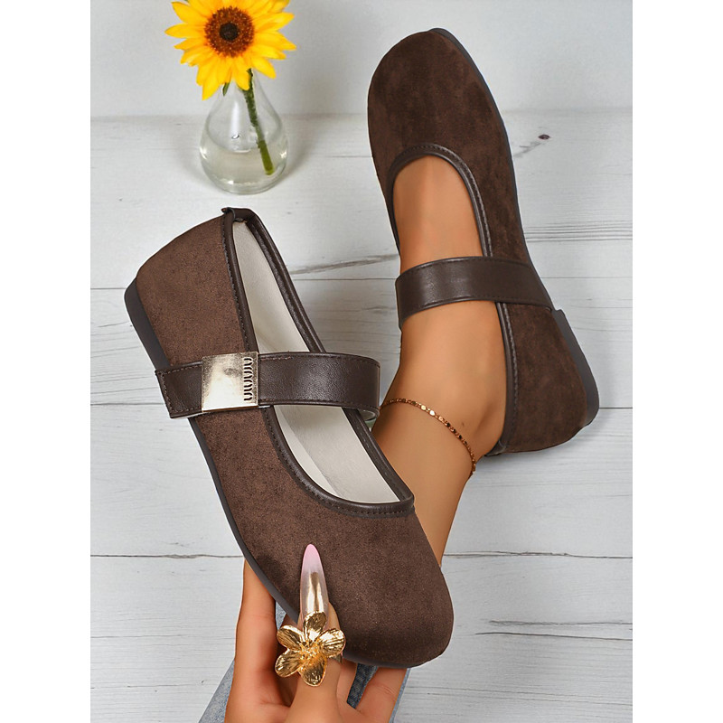 Women's Brown Wide Mary Jane Flats – Brown Suede Round Toe Buckle Barefoot Shoes, Retro Comfortable Flat Footwear for Office and Casual Outfits