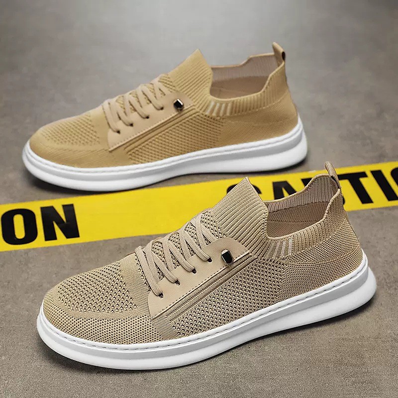 Men's Beige Knit Slip-On Sneakers, Breathable and Comfortable Casual Shoes, Perfect for Running, Travel and Casual Daywear