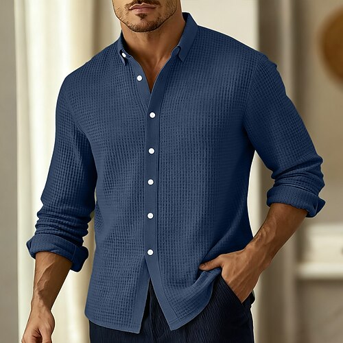Per uomo Camicia Camicia a nido d'ape Camicia casual Camicia con Bottoni Nero Vino Blu marino Verde Manica Lunga Semplice Bavero Casuale Quotidiano Abbigliamento Moda Streetwear Casual
