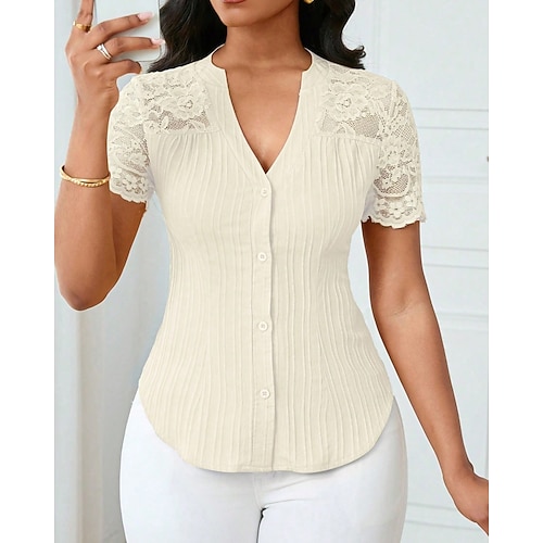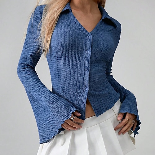 Per donna Blusa Semplice Elegante Manica Lunga Manica a Campana Colletto Polo Top Regolari Quotidiano Ferie Uscire Patchwork Bottoni Nero Bianco Vino Blu Reale Albicocca Estate Primavera