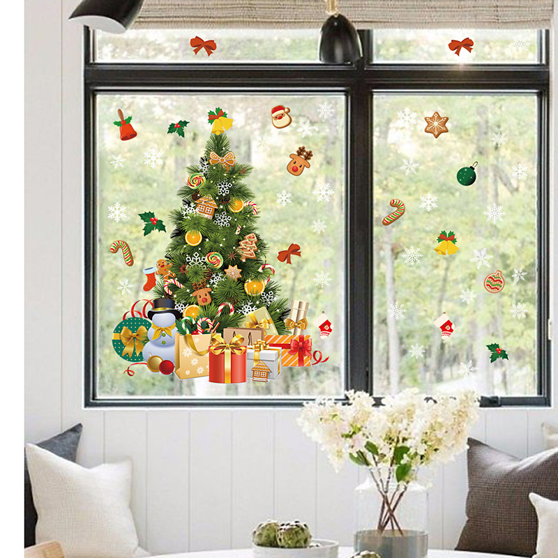 Christmas Wall Sticker Double Sided Visible Transparent Electrostatic Film Window Decal Christmas Tree And Gift Design Removable Wall Decor For Living Room Bedroom Shop Window