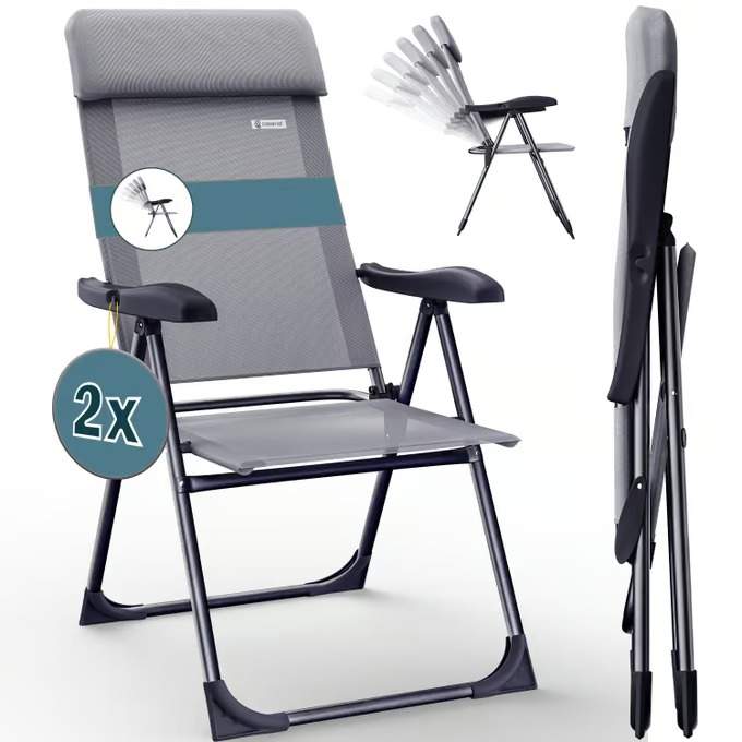 Kokoontaitettavat puutarhatuolit, 2 kpl – Harmaa, Alumiini, Säädettävä
