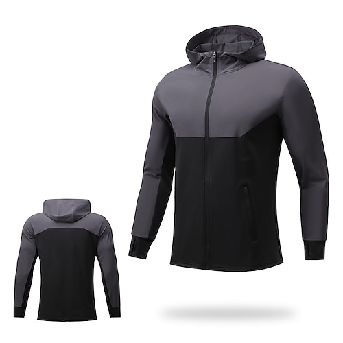 Per uomo Giacca sportiva Con cappuccio Manica Lunga Top Athleisure Blocco di colori Protezione Solare Leggero Palestra Escursionismo Allenamento abbigliamento sportivo Abbigliamento sportivo Nero Blu