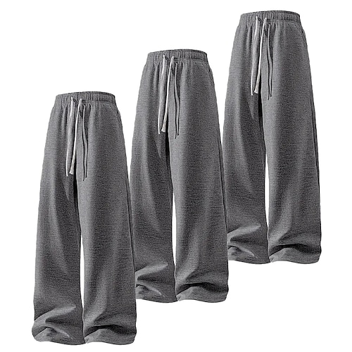 Confezione multipla da 3 pezzi, pantaloni della tuta da uomo neriblu navygrigio chiaro, pantaloni della tuta leggeri a gamba dritta, coulisse, elastico in vita, tinta unita, da indossare ogni giorno, in spandex, primaverili