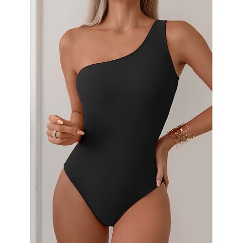 Costume da bagno intero da donna monokini a spalla unica controllo della pancia alta vita slim senza schiena vacanza mare abbigliamento a strisce collo asimmetrico senza maniche