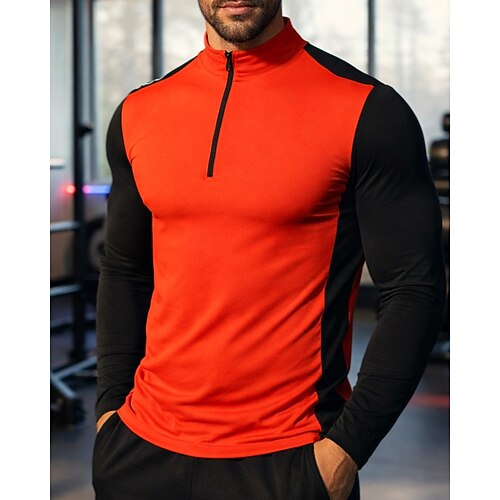Per uomo Blocco di colori T-shirt da corsa Maglia a compressione Maglia atletica Maglia da corsa Sport in alto Primavera Autunno Patchwork Blocco di colore Cerniera a un quarto Manica Lunga