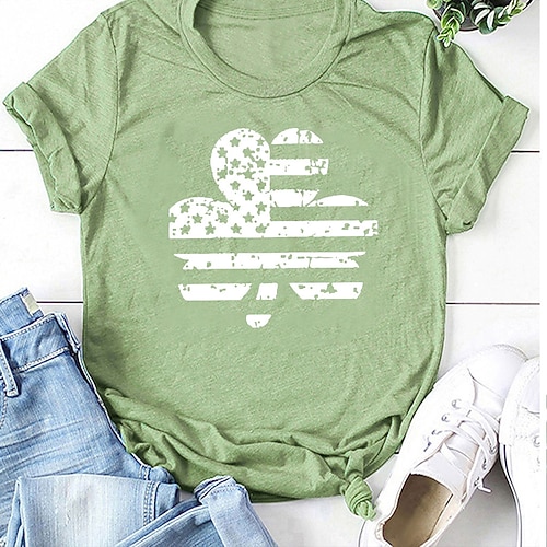 Maglietta da donna di San Patrizio T shirt Tee Verde Rosa Giallo Foglia Stampa Stella Maniche Corte Casuale Weekend Base Collo Rotondo Vestibilità Normale Fortunata Dipinto S