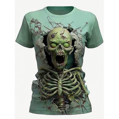 T-shirt donna teschi grafica scheletro vintage stile casual maniche corte collo rotondo top regolari quotidiano uscita fine settimana stampa rosa blu viola verde estate