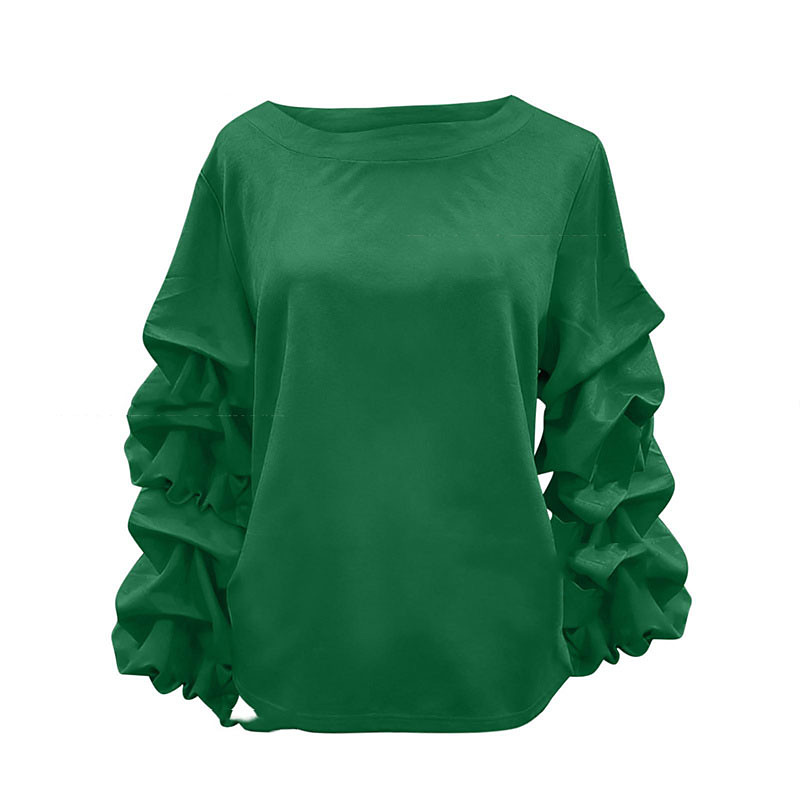 Women's Blouse Dressy Tops Solid Color Plain Elegant Vintage Cute Long Sleeve Crew Neck Regular Tops Work Daily Holiday Ruched Ruffle Patchwork Grass Green Black White Army Green Red Fall Winter