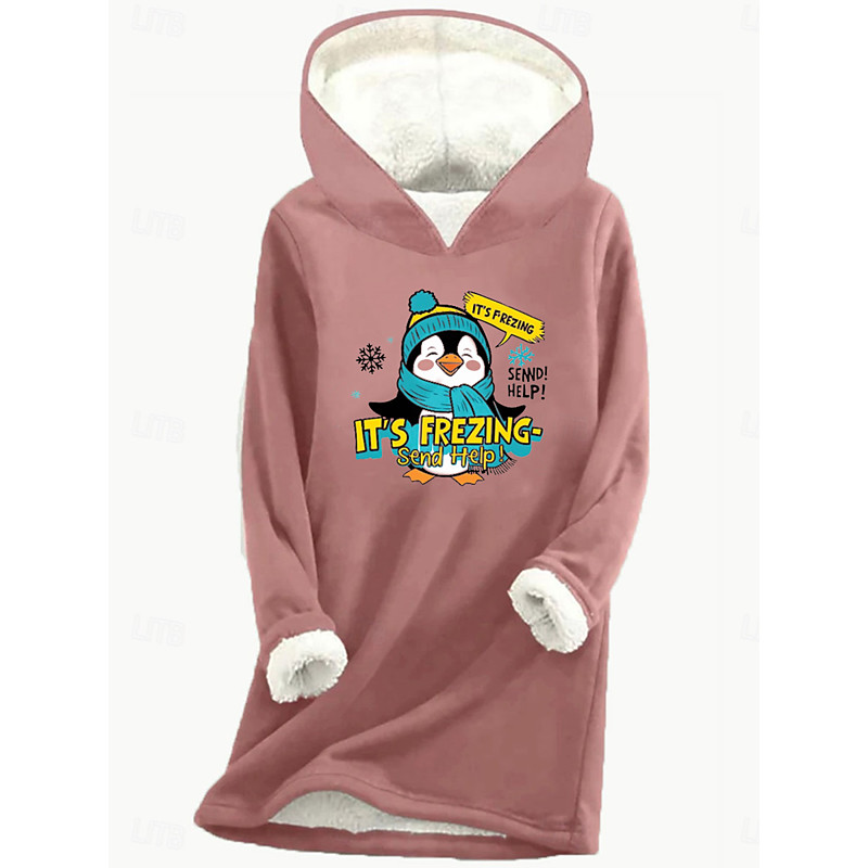 Women's Pullover Hoodie Sweatshirt Graphic Animal Letter Warm Casual Fuzzy Long Sleeve Hooded Long Tops Casual Sports Print Pink Blue Gray Fall Winter