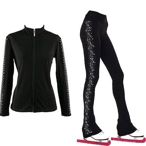 giacca da pattinaggio artistico con pantaloni, abbigliamento da pattinaggio sul ghiaccio da donna e da ragazza, nero, elastico, abbigliamento da pattinaggio per competizione, termico, caldo, con