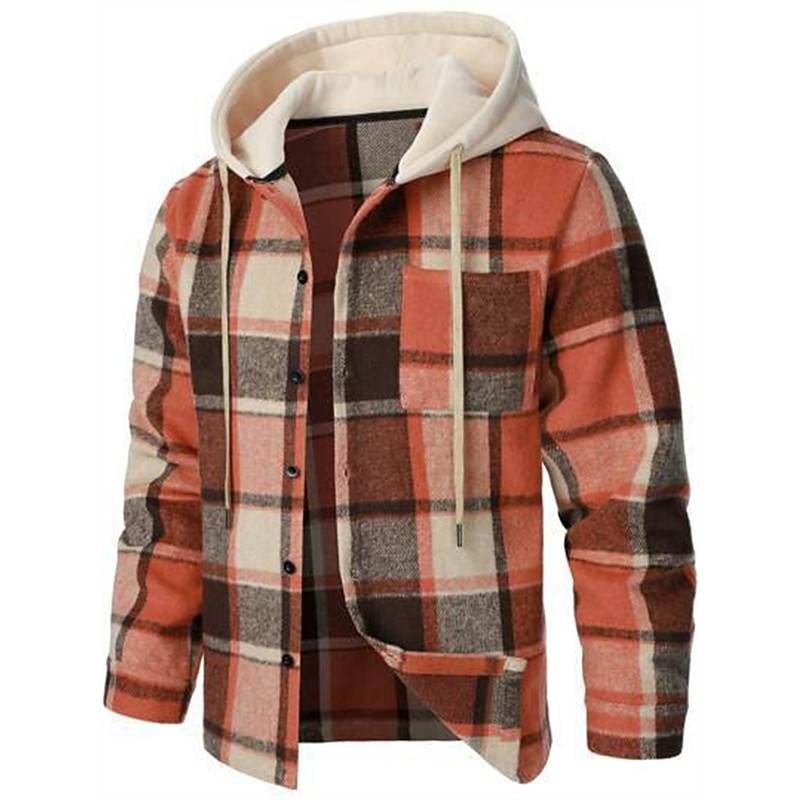 Men's Shirt Jacket Casual Jacket Hoodied Jacket Shacket Vacation Daily Breathable Pocket Spring Fall Plaid Fashion Classic Hooded Regular Black Red Orange Green Khaki Jacket