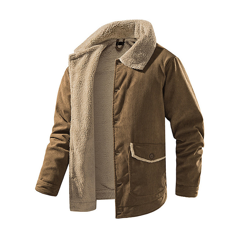 Men's Winter Coat Corduroy Jacket Fleece Jacket Casual Jacket Casual Daily Thermal Warm Pocket Button-Down Fall Winter Plaid Streetwear Daily Turndown Regular Brown Green Jacket