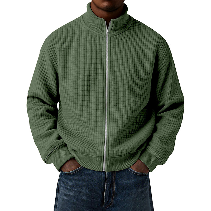 Men's Sweatshirt Waffle Sweatshirt Full Zip Sweatshirt Black White Light Green Wine Navy Blue Standing Collar Plain Zip Up Textured Casual Daily Sports Outdoor Streetwear Cool Sportswear Spring
