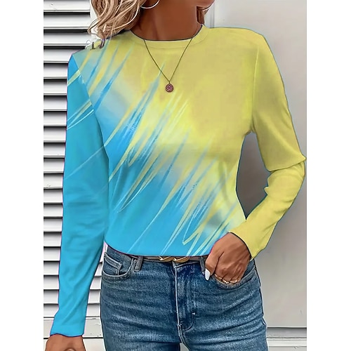 Per donna Maglietta Grafico Geometrico Vintage Elegante Moderno Manica Lunga Girocollo Top Regolari Quotidiano Stampato Blu Rosa Blu Reale Arancione Verde Primavera Autunno Inverno