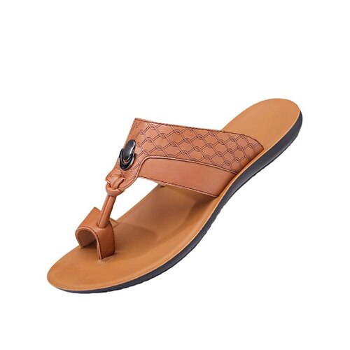 sandali da uomo in similpelle marrone chiaro con punta aperta, cinturini regolabili e suola comoda per le attività estive