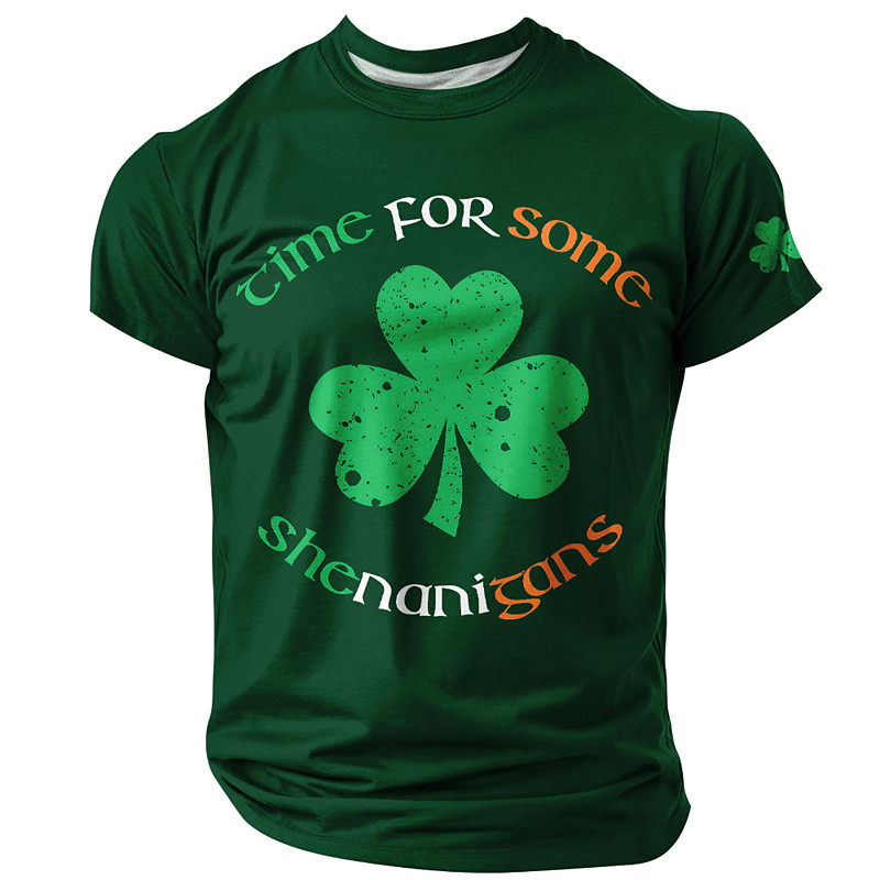 St Patricks Day Time For Some Shenanigans T Shirt Funny Irish Shamrock Graphic Tee Men Lucky Green White Orange Holiday Party Black Top Clothing Apparel S M L XL XXL XXXL
