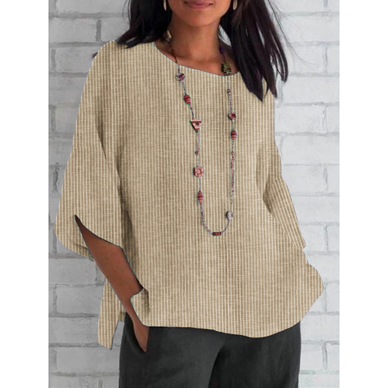 Women's Linen-Inspired Shirts Summer Tops Blouse Daily Casual 3/4 Length Sleeve Crew Neck Regular Tops Black Sky Blue Orange Apricot Summer Spring Fall