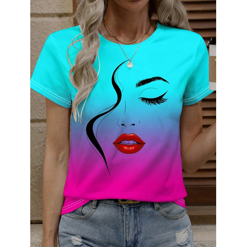 Women's T Shirt Summer Tops Graphic Color Gradient Classic Casual Short Sleeve Crew Neck Round Neck Regular Tops Daily Weekend Print Blue White Pink Purple Summer