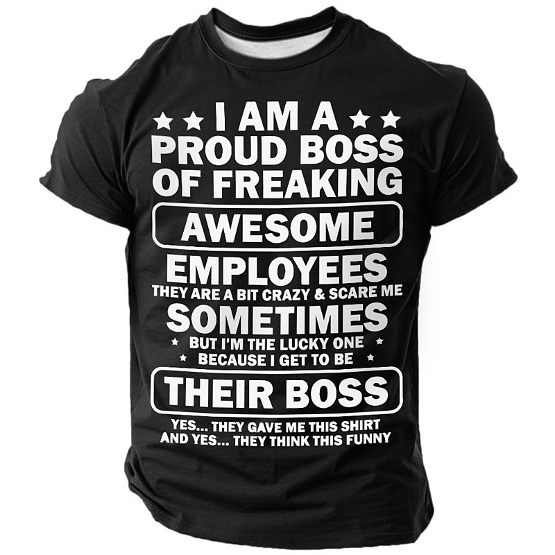 Mens T-Shirt, Funny Proud Boss of Awesome Crazy Employees Work Humor Graphic Tee, Short Sleeve White