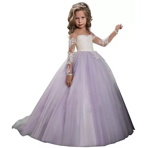 Bambino Da ragazza Abito da damigella Vestito da festa Tinta unica Manica lunga Prestazioni Matrimonio Feste Retato Da principessa Dolce Retato Fino a metà polpaccio Vestito tubino Abito in tulle