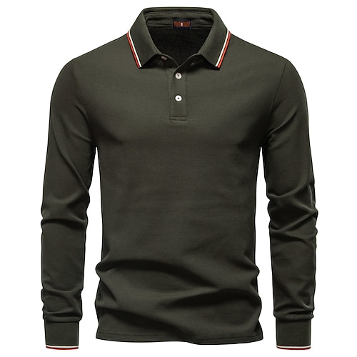 Per uomo Polo Lavoro Affari Collo ripiegato Manica Lunga Tempo libero Confortevole Semplice Blocco di colore Puro Tutte le stagioni Vestibilità regolare Rosso rubino Nero Bianco Blu marino scuro