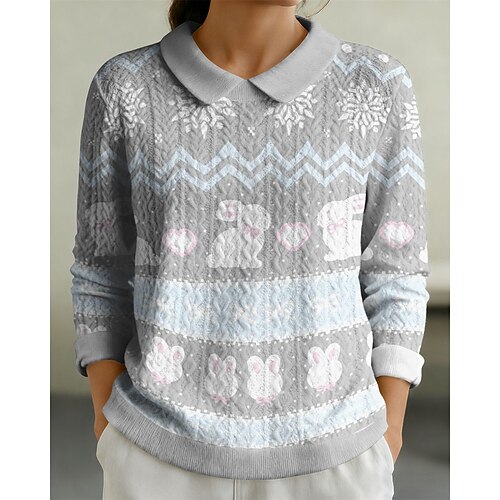 Per donna Felpa Pullover Grafico Semplice Elegante Caldo Moda Manica Lunga Bavero Top Regolari Casa Lavoro Streetwear Patchwork Stampato Blu Bianco Verde chiaro Arancione Beige Autunno Inverno