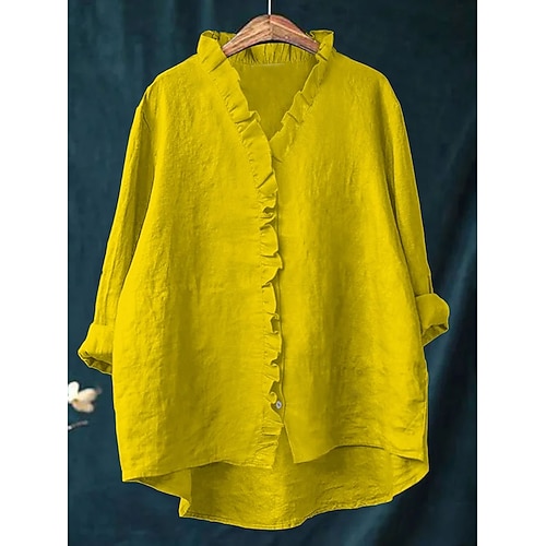 Pasqua Per donna Camicia Boho Tunica Tinta unica Elegante Vintage Quotidiano Manica Lunga Scollo a V Top lunghi Quotidiano Lavoro Ferie Volant Blu Bianco Giallo Rosso Grigio Estate Primavera Autunno