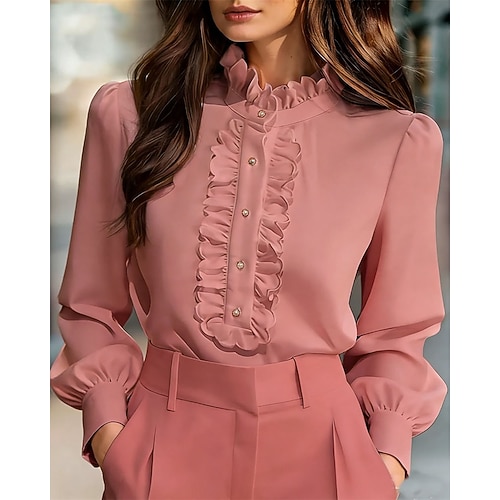 Per donna Blusa Top Eleganti Tinta unica Semplice Elegante Vintage Signore Manica Lunga Collo Alto Top Regolari Quotidiano Lavoro Ferie Arricciato Volant Patchwork Nero Bianco Rosa Autunno Inverno