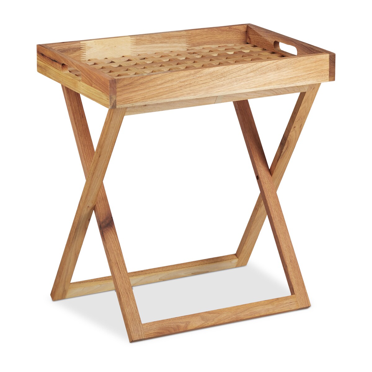 Relaxdays Tabletttisch klappbar, Serviertisch Walnuss-Holz, Klapptisch klein, Serviertablett, HxBxT: ca. 54 x 52 x 36 cm