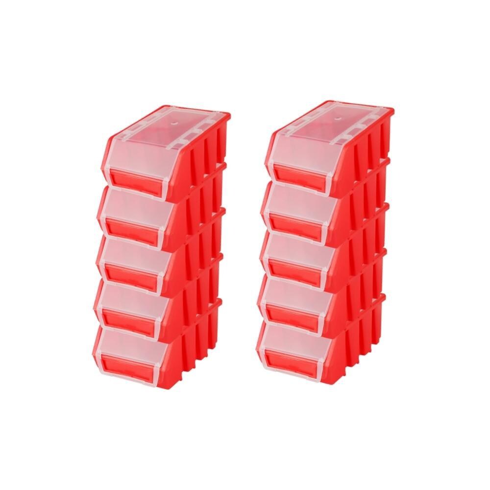 PROREGAL Mega Deal 10x Sichtlagerbox 2 mit Deckel | HxBxT 7,5x11,6x16cm | Polypropylen | Rot | Sichtlagerbehälter, Sichtlagerkasten, Sortierbehälter