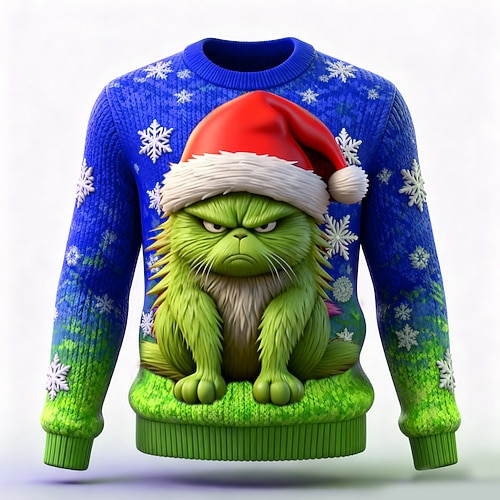 Maglione di Natale brutto Per uomo Stampa 3D Personaggio dei cartoni animati Maglione Maglieria Girocollo Casual Vacanza Quotidiano Festival Tenere al caldo Manica Lunga Primavera Autunno Inverno