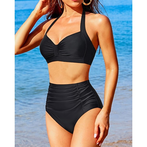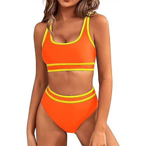 Per donna Bikini Bikini a vita alta con volant 2 pezzi Patchwork Protezione UV Alta elasticità Senza Maniche Costume da Bagno Surf Immersione Snorkeling Estate