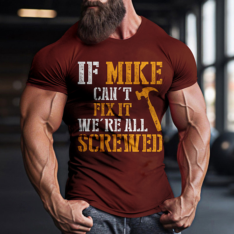 Men's Work Humor T-Shirt - Funny 'If Mike Can't Fix It We're All Screwed' Graphic Short Sleeve