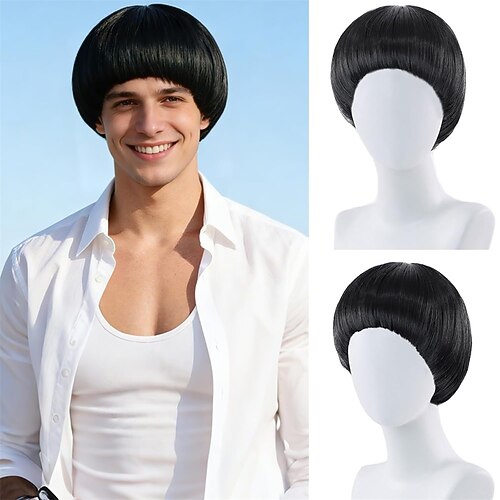 parrucca nera a forma di fungo per uomo e donna costume parrucca corta nera a caschetto con frangia per tutti i giorni festa Halloween cosplay anime