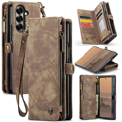 Caseme 008 Lederhülle für Samsung Galaxy Z Fold7 5G mit abnehmbarer Brieftasche und Tragegurt