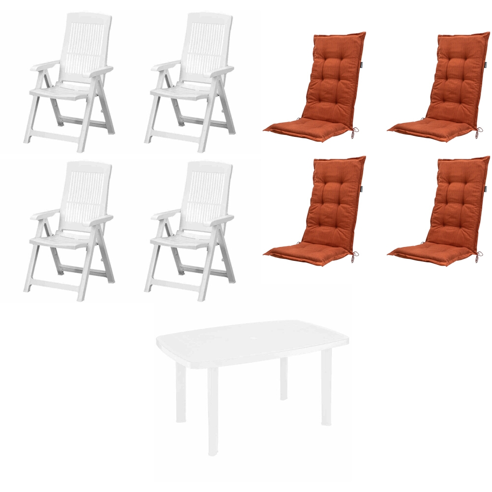 PROGARDEN Pro Garden Tampa+Faro SET bestehend aus 4x Klappsessel weiß, 1x Tisch weiß, 4x Auflage Basic terra