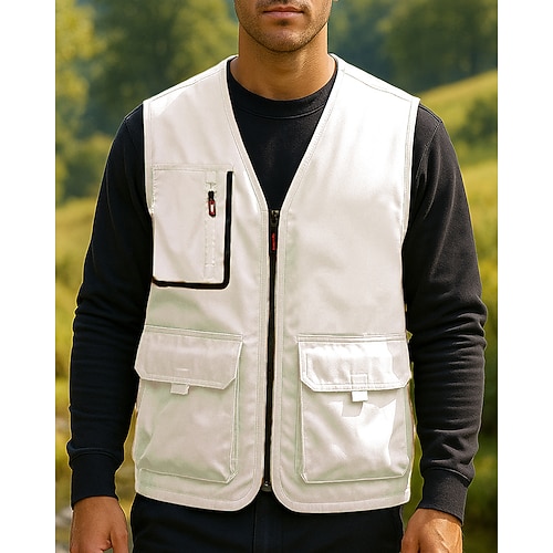 Men's Vest Gilet Fishing Vest Hiking Vest Sleeveless Vest Gilet Jacket Outdoor Street Holiday Daily Wear Streetwear Chic Modern Spring Fall Pocket Cotton Blend Windproof Warm Pure Color Zipper