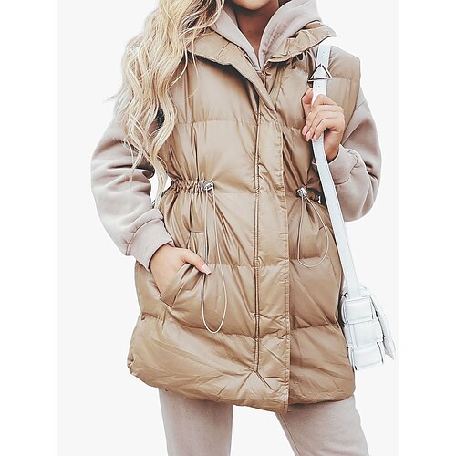 Per donna Gilet imbottito Gilet Caldo Confortevole Cerniera Tasca Moda Moderno Casual Semplice Natale Uscire Weekend Cerniera Regolare Collo alla coreana Vestibilità regolare Senza Maniche Capispalla