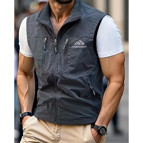 Per uomo Gilet Gilet da pesca All'aperto Quotidiano Moda Casual Primavera Autunno Tasca Stampato Poliestere Confortevole Montagna Cerniera Collo alla coreana Vestibilità regolare Nero Rosso Cachi